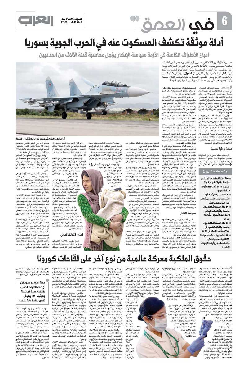لكن الروس، كما فعلوا في كل هذه الحوادث، ينكرون تورطهم في الهجوم. وقال وودز “لم تعترف روسيا قط بمقتل مدني واحد خلال أكثر من خمس سنوات من الحرب في سوريا”.وبحسب التقرير، فإنه منذ بدء التدخل الروسي في سوريا في سبتمبر 2015 إلى ديسمبر الماضي، سجلت آيرويز 4500 حادثة إضرار بالمدنيين مرتبطة بالقوات الروسية.