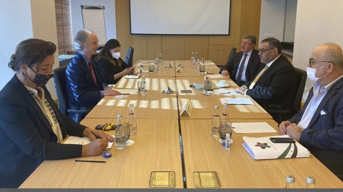 جري اليوم الثلاثاء المصادف 14/9/2021 لقاء بين المبعوث الدولي غير بيدرسون مع رئيس الائتلاف الوطني السوري سالم المسلط ورئيس هيئة التفاوض السورية أنس العبدة وبحضور الرئيس المشترك للجنة الدستورية هادي البحرة أونلاين .
